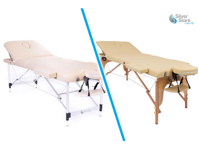 Glavna razlika med leseno in aluminijasto prenosno masažno mizo je teža. Aluminijasta masažna miza je nekoliko lažja, zaradi česar jo lažje prenašate, če imate delo na terenu.